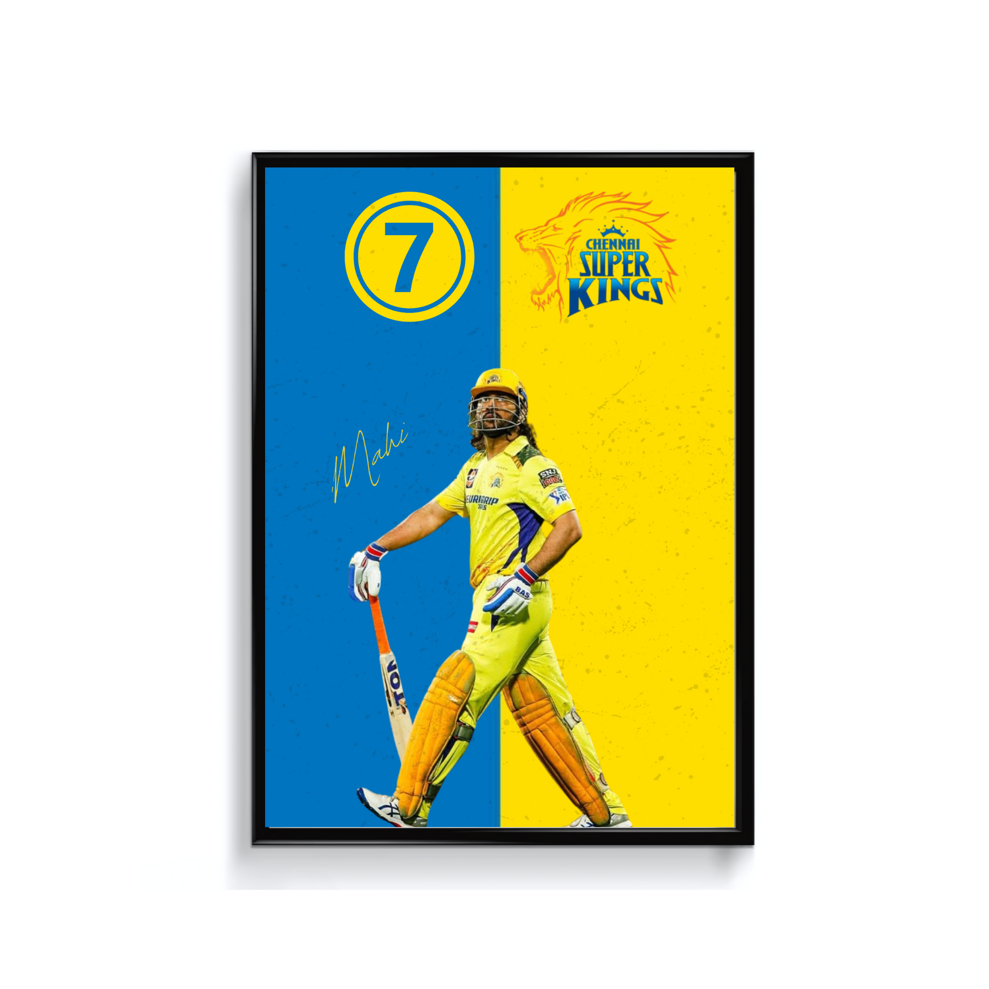 Enhance your space with this professionally-framed MS Dhoni CSK poster. Show your love for the Chennai Super Kings with this high-quality, expertly crafted piece. Featuring the iconic MS Dhoni, this poster is a must-have for any fan or collector. Display it proudly in your home, office, or man cave.